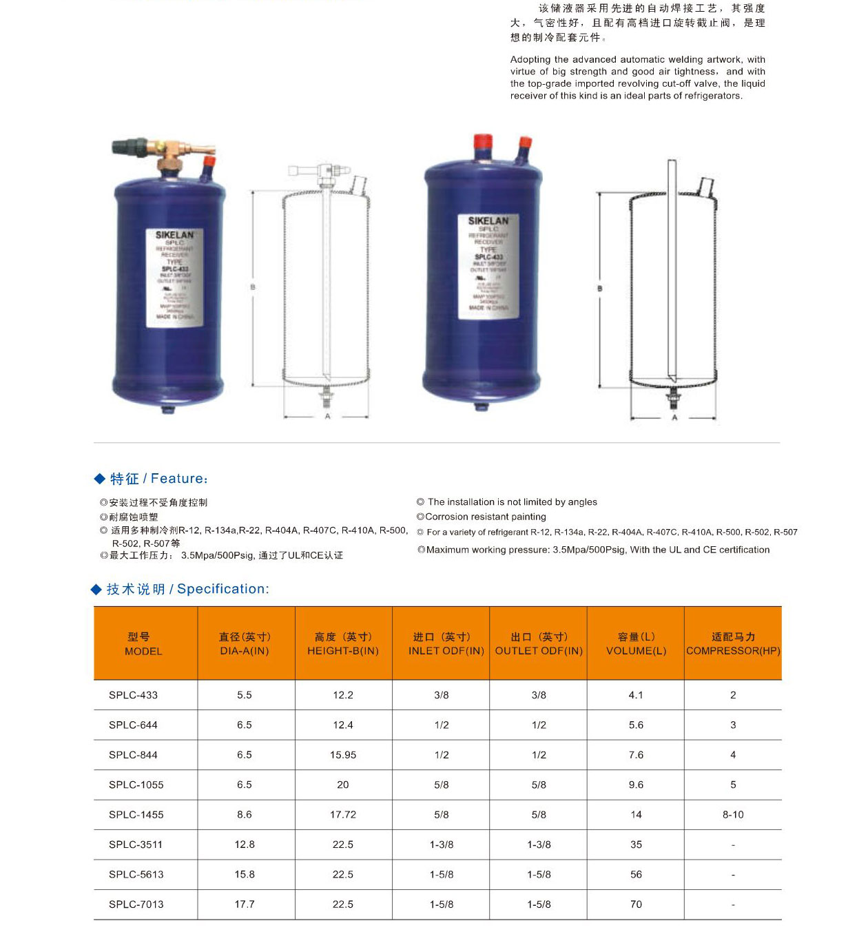 產(chǎn)品簡(jiǎn)介:該儲(chǔ)液器采用先進(jìn)的自動(dòng)焊接工藝,其強(qiáng)度大,氣密性好,且配有高檔進(jìn)口旋轉(zhuǎn)截止閥,是理想的制冷配套元件。