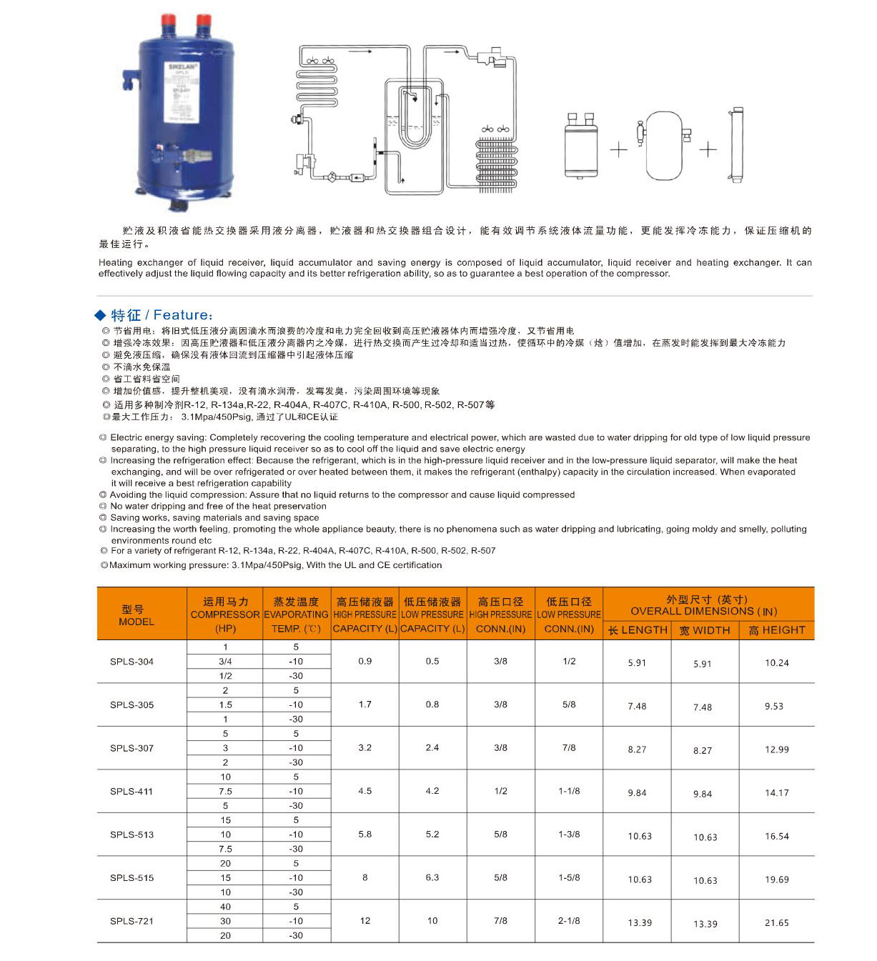 節(jié)省用電,將舊式低壓液分離因滴水而浪費的冷度和電力完全回收到高壓貯液器體內(nèi)而增強冷度,又節(jié)省用電。增強冷凍效果,因高壓貯液器和低壓液分離器內(nèi)之冷媒,進行熱交換而產(chǎn)生過冷卻和適當(dāng)過熱,使循環(huán)中的冷媒(焓)值增加,在蒸發(fā)時能發(fā)揮到最大冷凍能力。避免液壓縮,確保沒有液體回流到壓縮器中引起液體壓縮。不滴水免保溫。省工省料省空間。增加價值感,提升整機美觀,沒有滴水潤滑,發(fā)霉發(fā)臭,污染周圍環(huán)境等現(xiàn)象。
